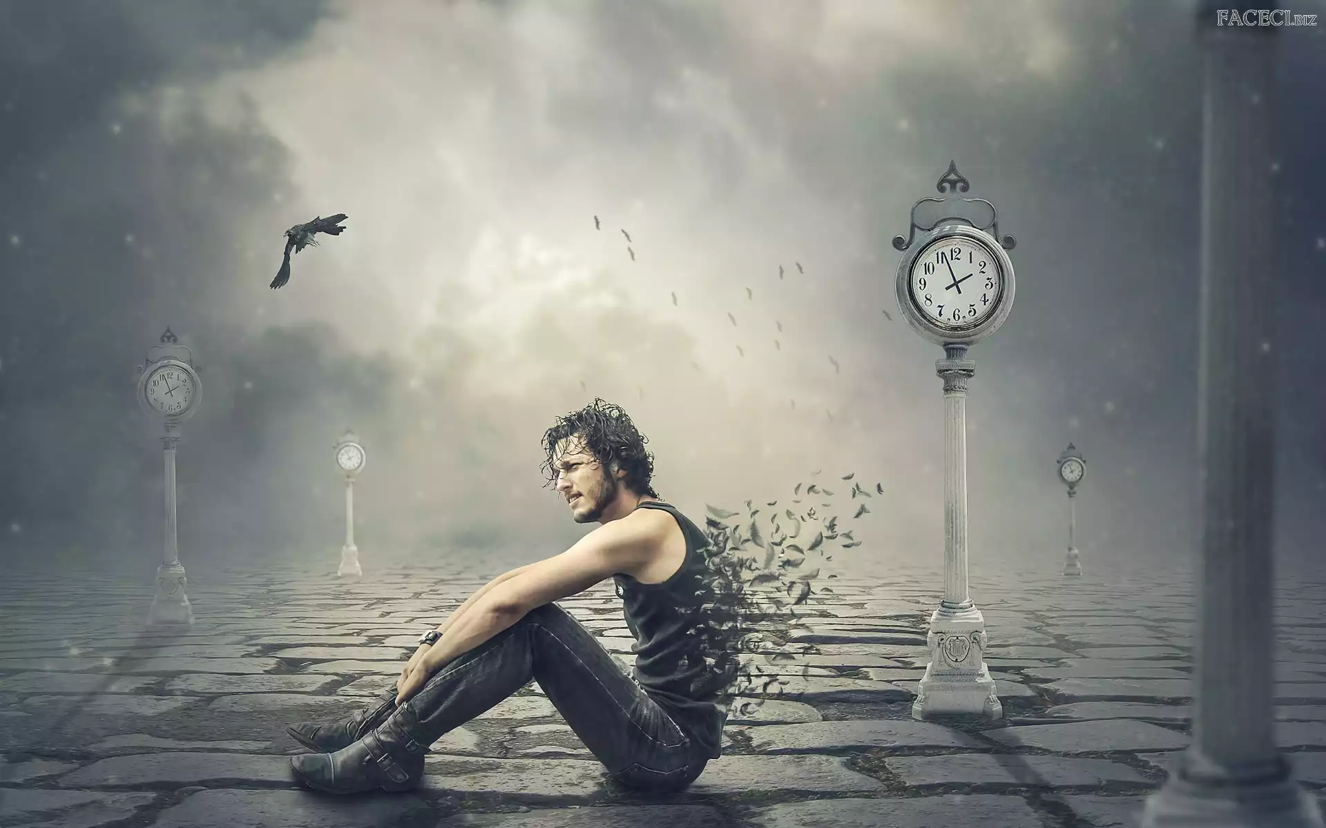 Fantasy, Zegary, Piórka, Mężczyzna, Ptaki - faceci.biz